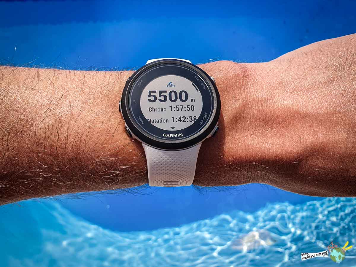EXPÉRIENCE : Pour les séries, je regarde rarement ma montre, je préfère la simplicité de l’horloge à 4 aiguilles. Sur la suunto, elle a un chronomètre cruciforme qui a net avantage sur cet aspect. Peut-être que Garmin développera un widget sur ce point 😉 Lire le test de la suunto en natation