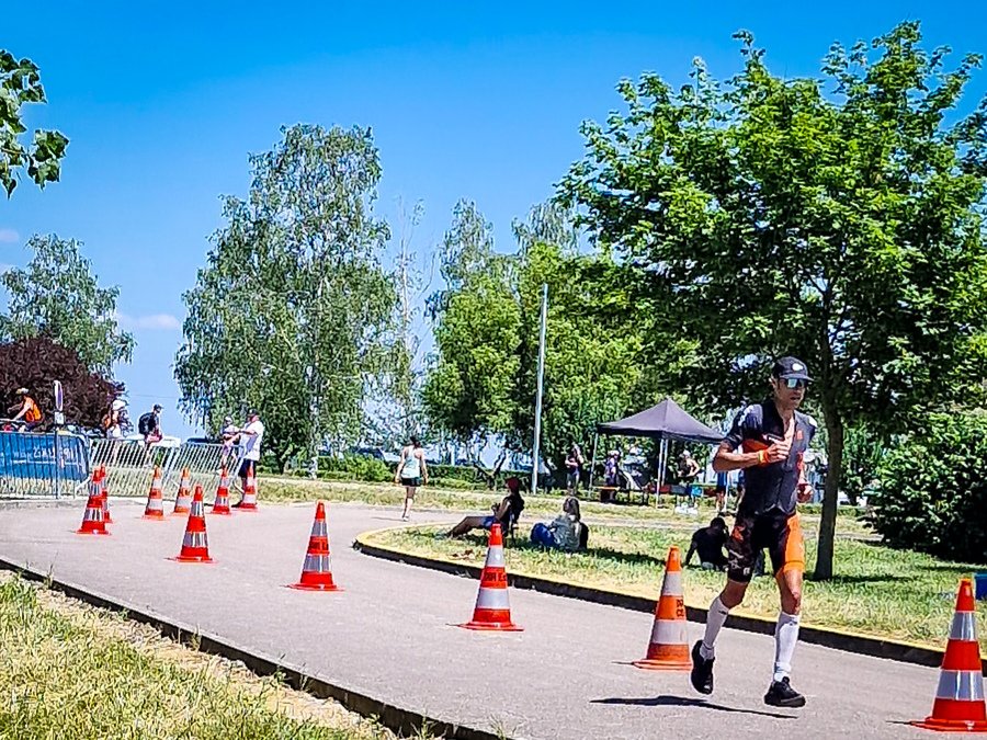 Je boucle le premier tour en un peu plus de 37km/h. L’allure est encore bonne. Je passe 12e dans le deuxième tour et vais me retrouver seul contre moi-même jusqu’au bouclage. Dans ce dernier tour, les 3 premiers participants du Half me reprennent à quelques kilomètres du T2. En soi, c’est une bonne chose, je vais pouvoir prendre un bon rythme à pied. Voir sur strava.