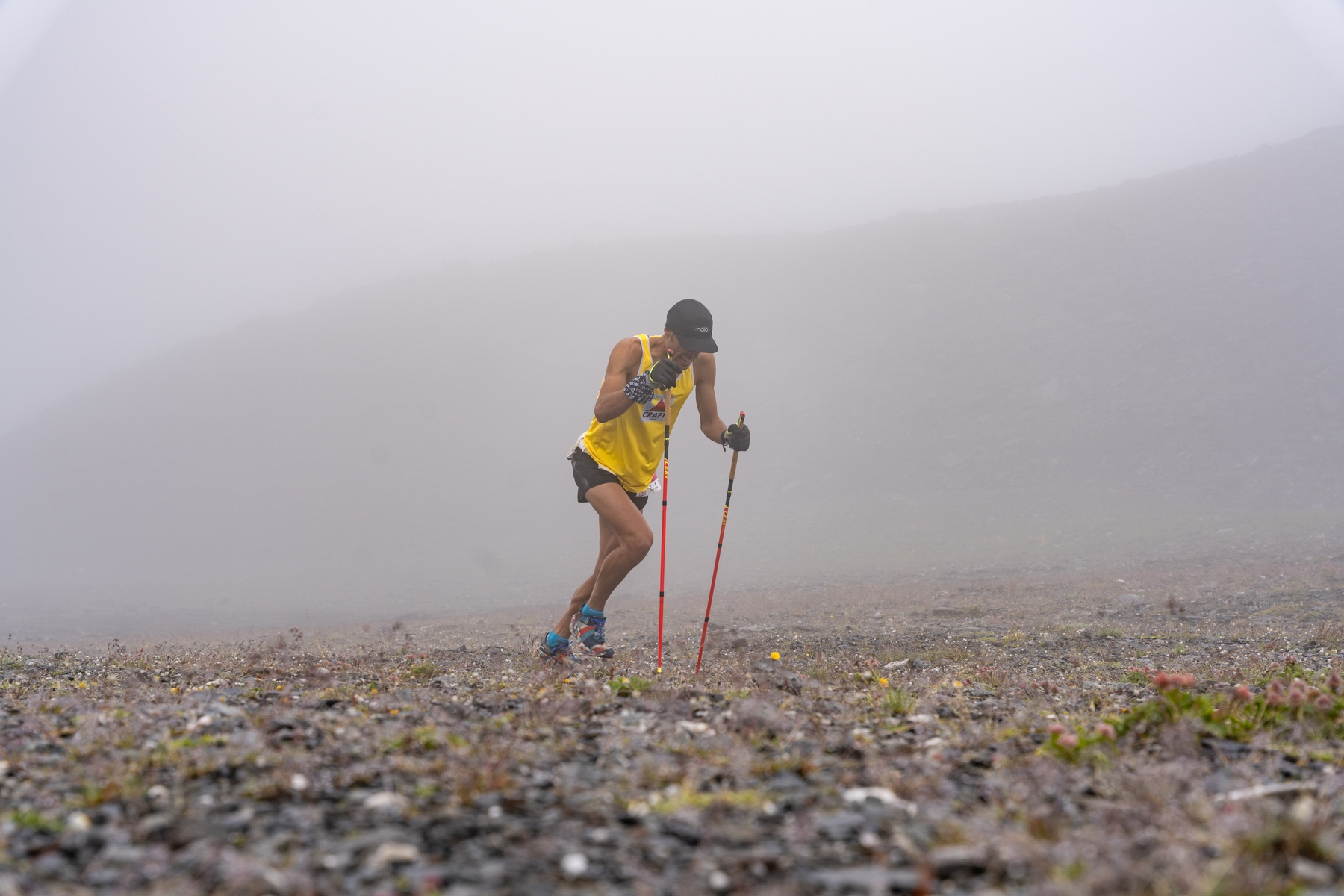 À la flamme rouge, le dernier rempart mesure 1,2 km à plus de 32% de pente. L’usage des bâtons est nécessaire. C’est dans cette partie que Julien Chorier me rattrapage. Je manque de grip sous mes craft. Je m’attendais un terrain moins glissant. Julien fait le trou à la faveur d’un terrain qui lui est plus propice.