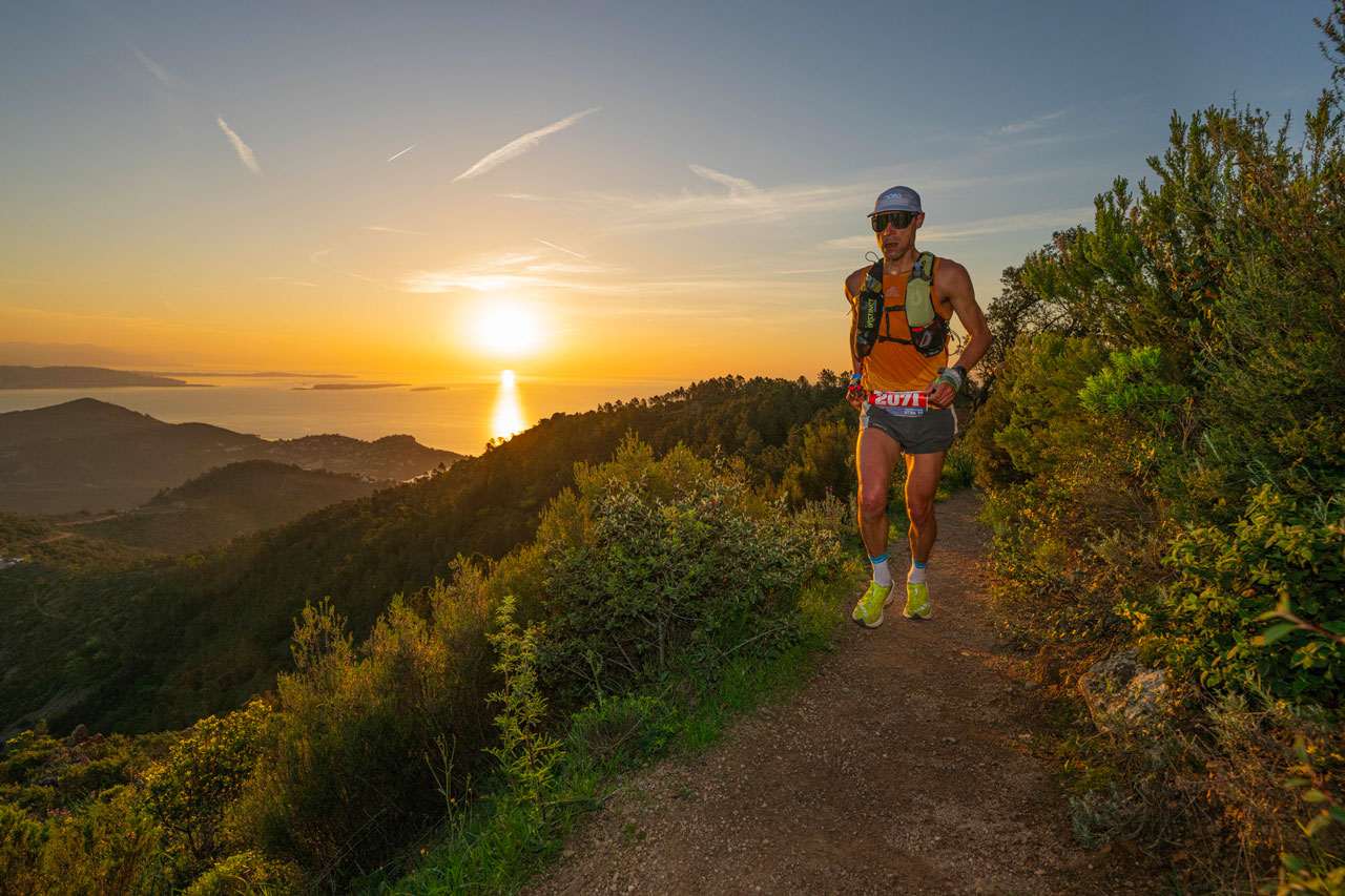 Le lever du soleil au Pic de l’Ours est un spectacle magique. La mer Méditerranée s’étale à perte de vue, baignée d’une lumière dorée qui réchauffe le corps et l’âme. Je suis toujours en tête, mais la concurrence est rude. Deux autres coureurs me talonnent de près.