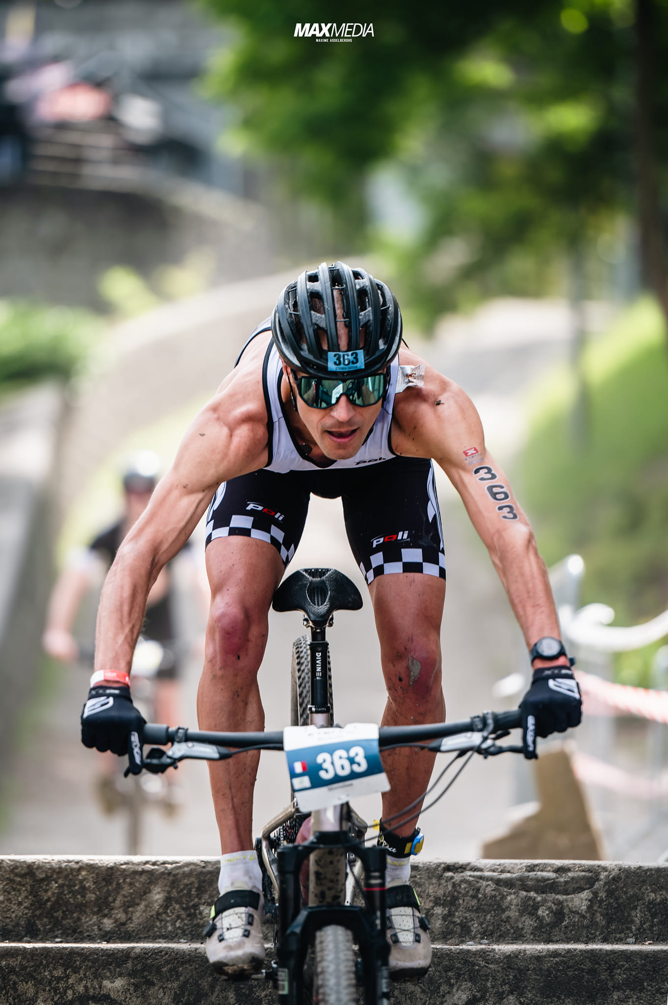 Le parcours VTT était comme prévu très intense et musculaire. C’était une course nerveusement tendue, sans jamais relâcher l’effort. J’ai maintenu ce rang gardant en point de mire le top 5. Les écarts étaient faibles et il ne faut pas faiblir.