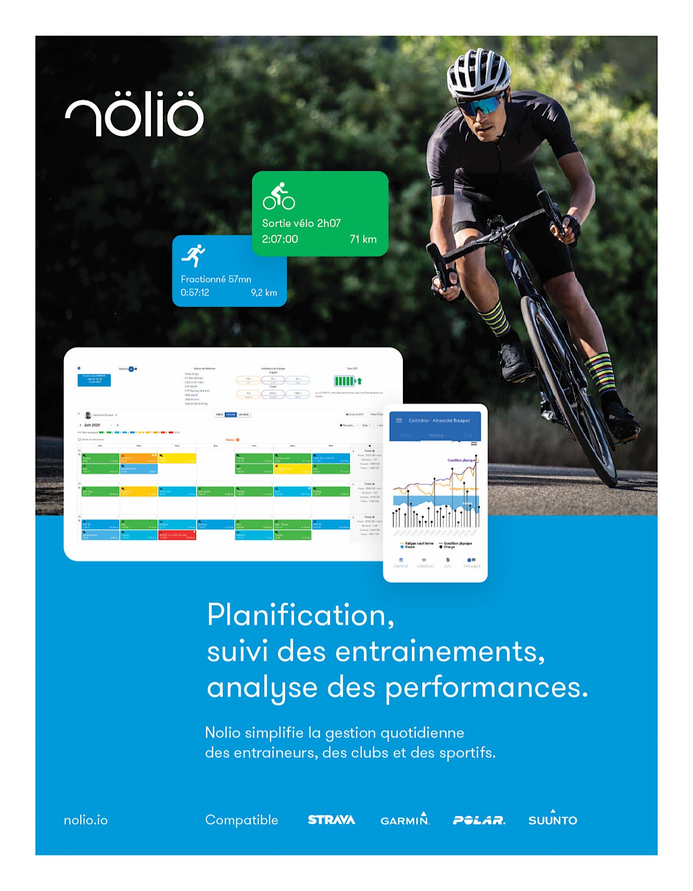 Grâce à Nolio, je peux progresser en ayant une vision claire de mon entraînement, en comprenant mieux mes performances et en ajustant mes plans de manière efficace. Cela me permet de performer en atteignant mes objectifs sportifs de manière plus structurée et informée. La centralisation des données, les outils d’analyse et la flexibilité de la planification sont des atouts majeurs pour mon développement en tant qu’athlète.